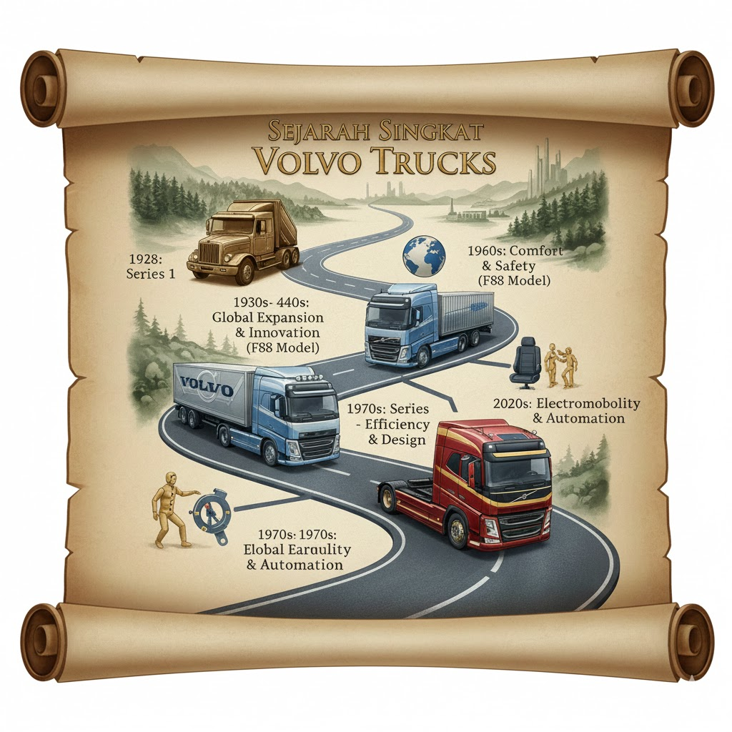 Volvo memulai produksi truk pertamanya pada tahun 1928. Sejak awal berdiri, Volvo sudah menempatkan keselamatan dan kualitas sebagai fondasi utama produknya. Filosofi tersebut terus dipertahankan hingga kini, membuat Volvo Trucks dikenal sebagai truk yang tahan lama dan minim risiko dalam pengoperasian.